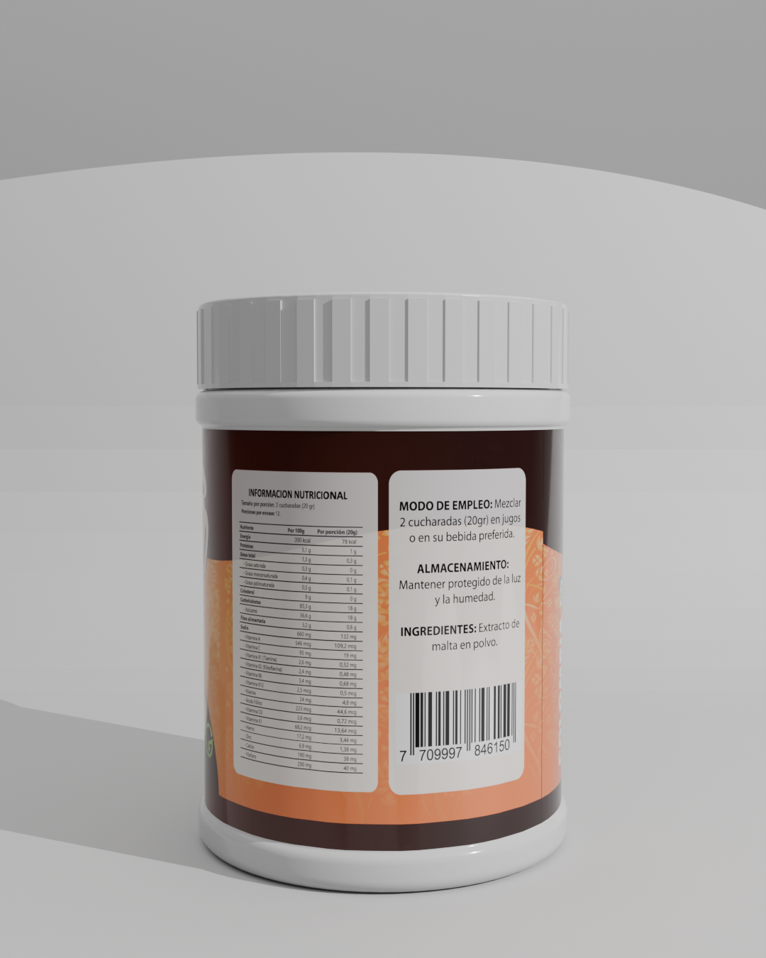 Extracto de malta en polvo, ideal para aportar energía, nutrientes y sabor natural a tus bebidas. 250 g – Rinde 12 porciones de 20 g.